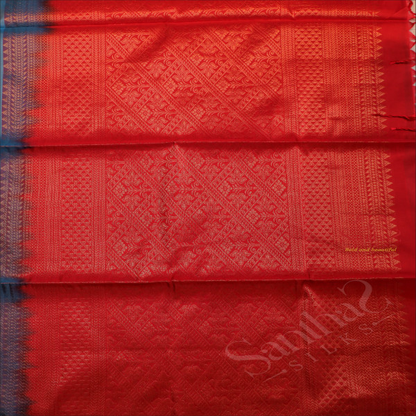 BLUE COLOUR BODY WITH SILVER ZARI FLORAL BUTTA WITH CONTRAST BLOUSE & BORDER
