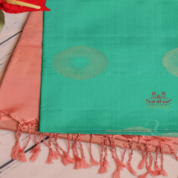 GREEN COLOUR BODY WITH GOLDEN FLORAL ZARI BUTTA WITH CONTRAST BLOUSE & BORDER