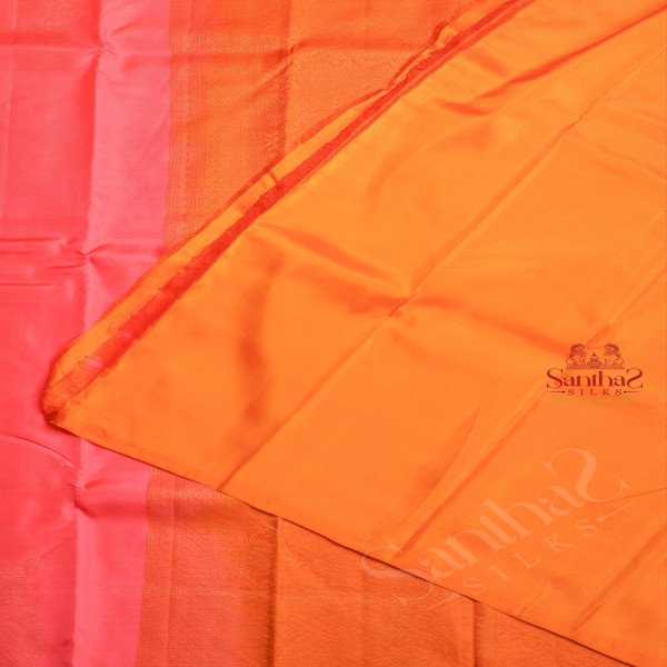 BORDERLESS PINK COLOUR BODY WITH GOLDEN ZARI BUTTA WITH CONTRAST BLOUSE