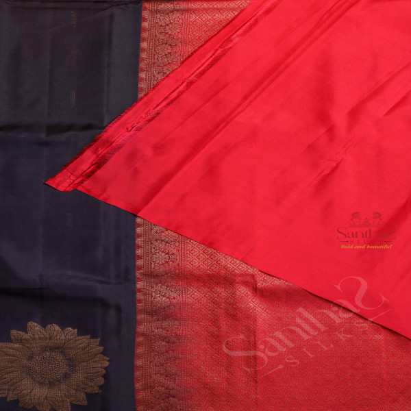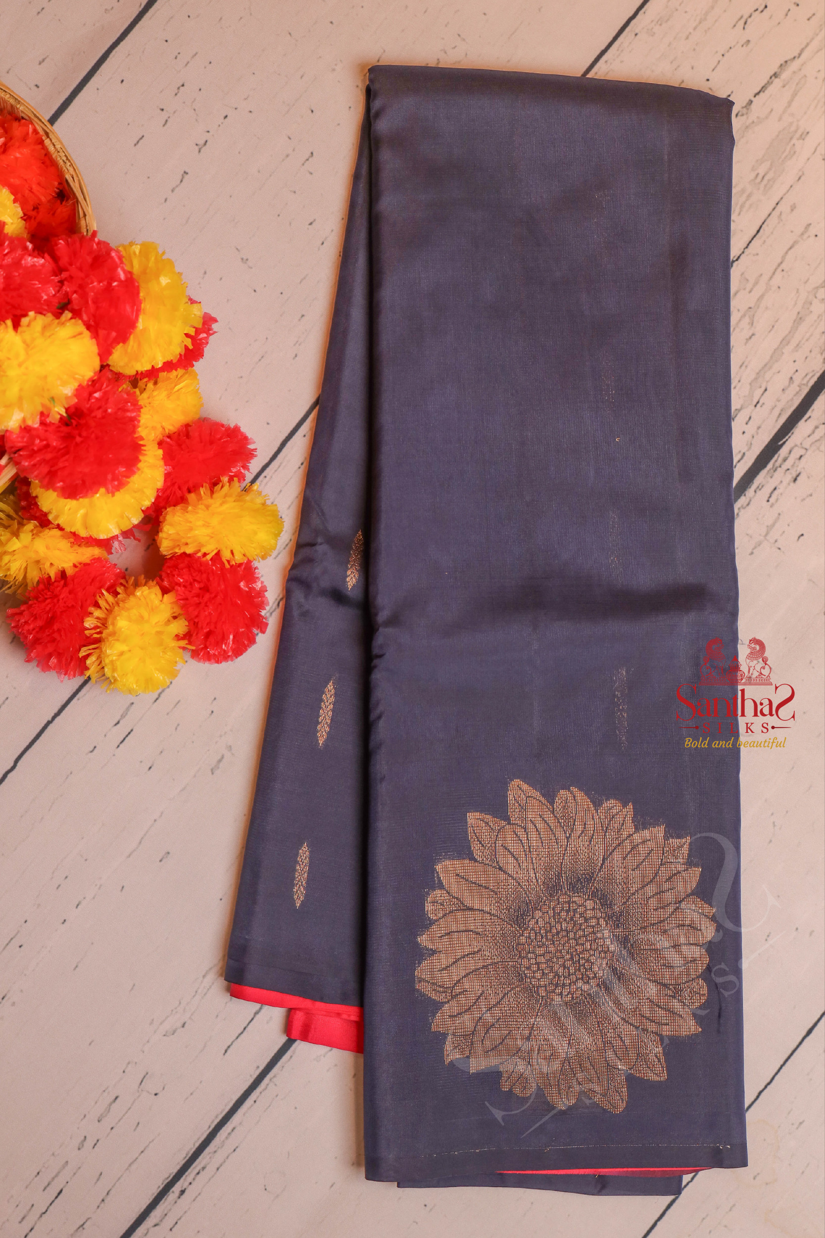 DARK BLUE COLOUR BODY WITH GOLDEN ZARI FLORAL BUTTA WITH CONTRAST BLOUSE