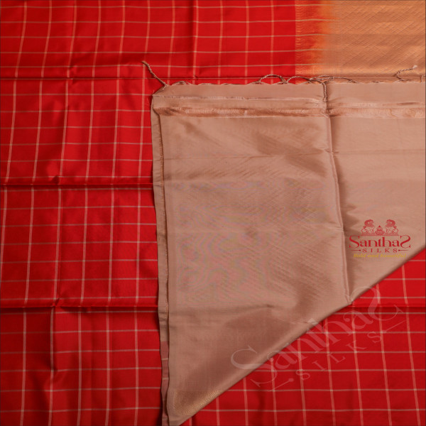 RED COLOUR CHECKED BODY WITH CONTRAST BLOUSE & BORDER