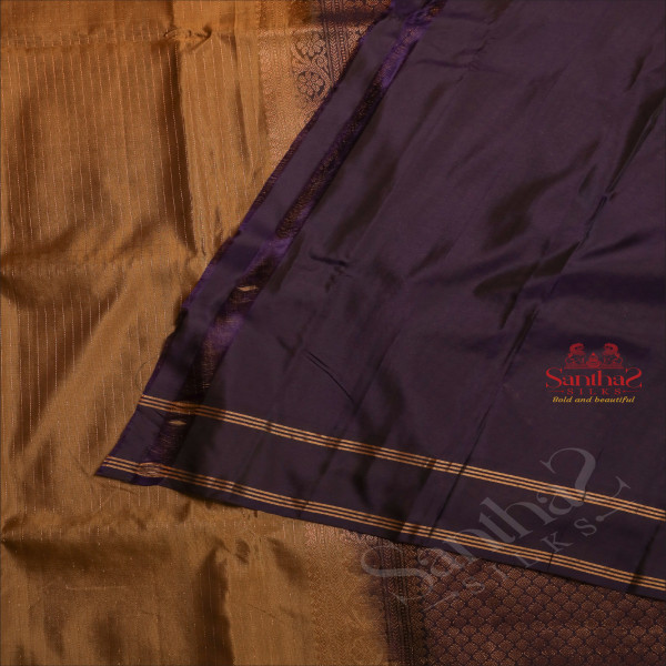 MOSS GREEN COLOUR BODY WITH GOLDEN STRIPS WITH CONTRAST BLOUSE & BORDER