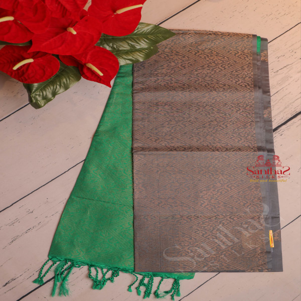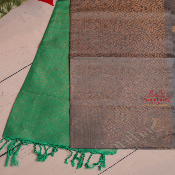 GREY COLOUR BODY WITH GOLDEN ZARI BUTTA WITH CONTRAST BLOUSE & BORDER