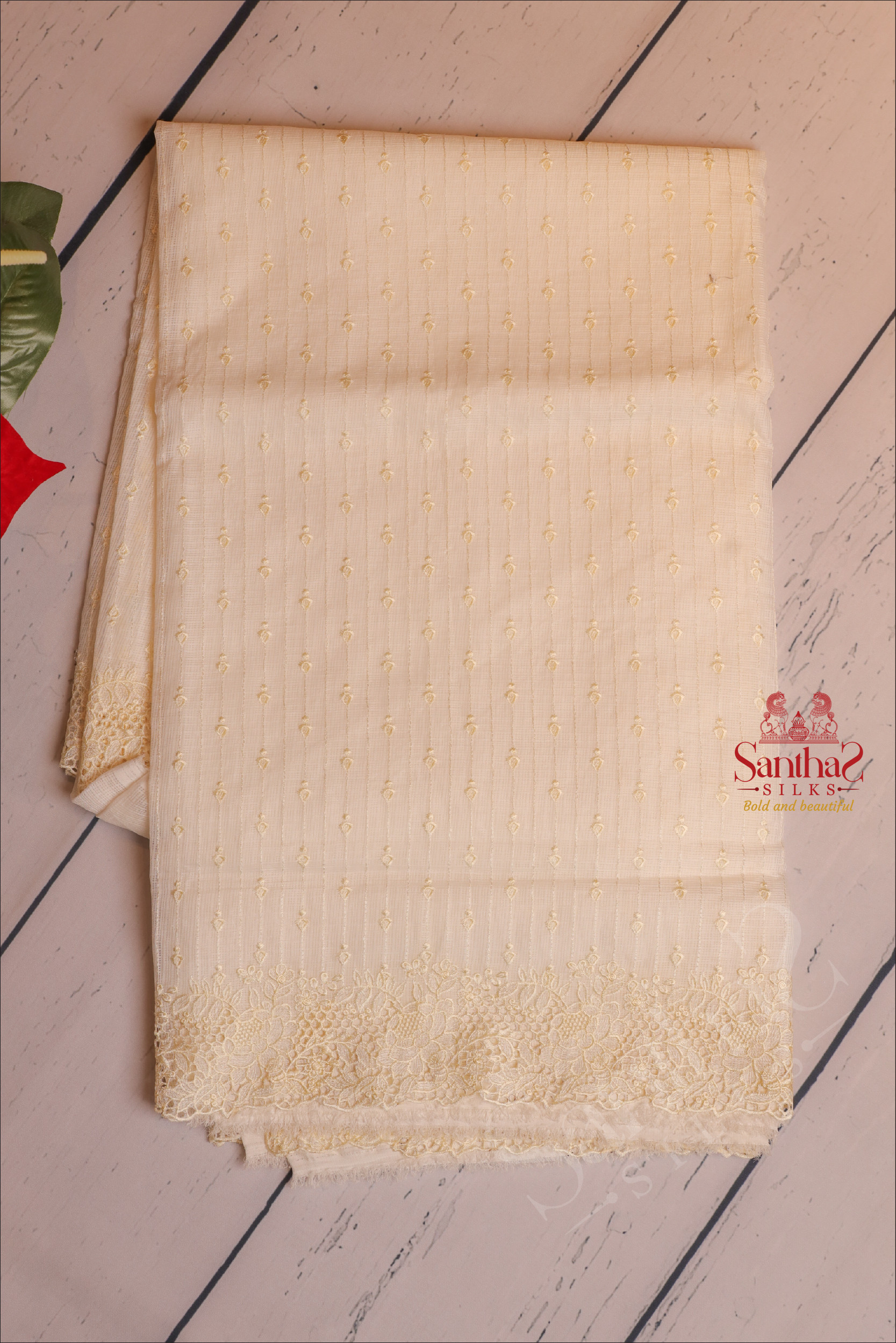 WHITE COLOUR KOTA SAREE WITH CUT WORK PATTERN WITH SELF BLOUSE