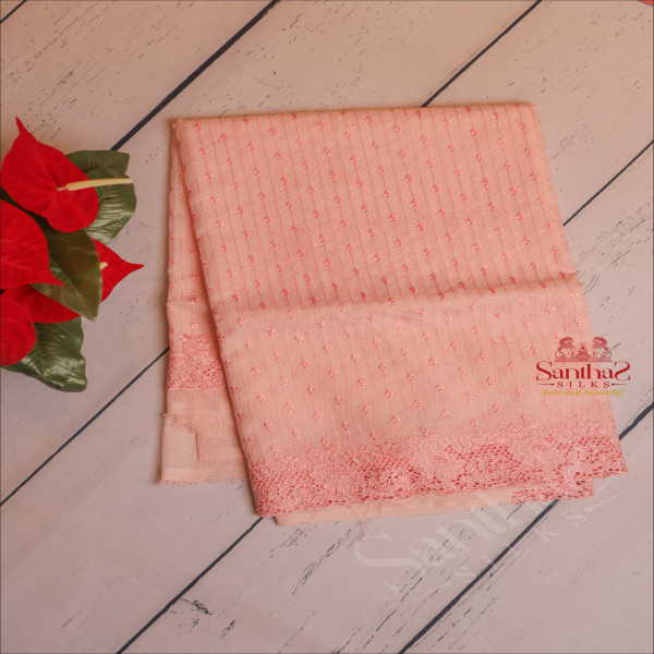 PINK COLOUR KOTA SAREE WITH CUT WORK PATTERN WITH SELF BLOUSE