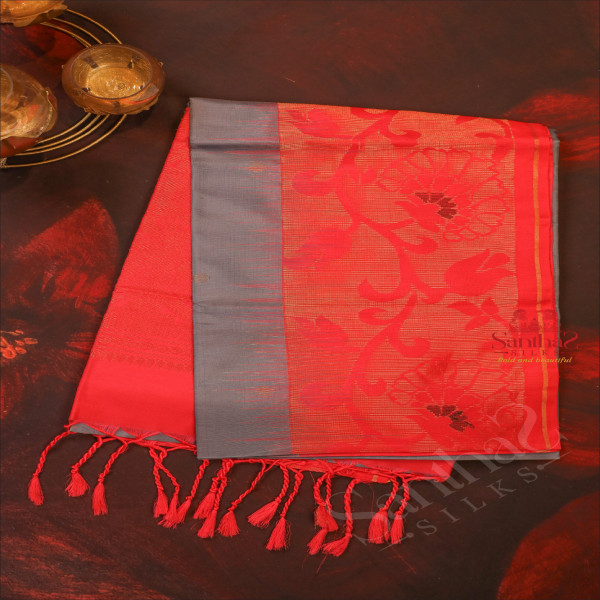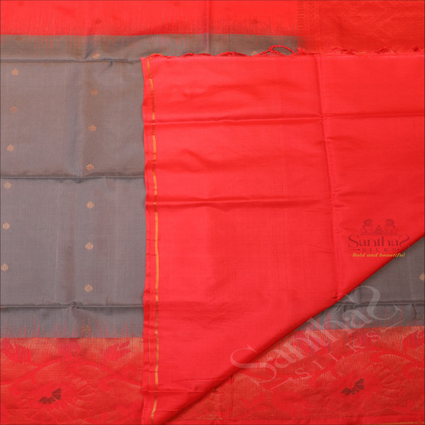 GREY COLOUR BODY WITH GOLDEN ZARI BUTTA AND CONTRAST COLOUR PALLU & BLOUSE