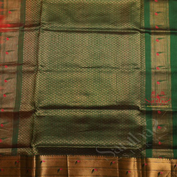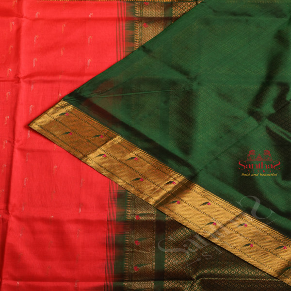 STRAWBERRY PINK COLOUR BODY WITH GOLDEN ZARI PYTHANI BUTTA WITH CONTRAST BLOUSE & BORDER