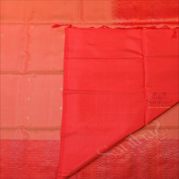 PASTEL PEACH COLOUR BODY WITH GOLDEN ZARI BUTTA WITH CONTRAST BLOUSE & BORDER