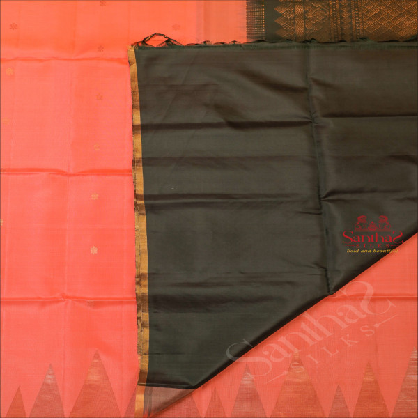 PEACH COLOUR BODY WITH GOLDEN ZARI BUTTA AND CONTRAST COLOUR PALLU & BLOUSE