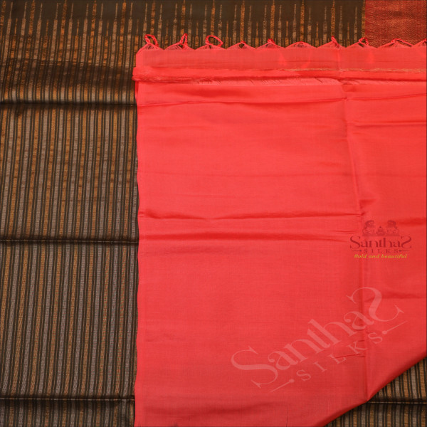 DARK FOREST GREEN COLOUR BODY WITH GOLDEN ZARI STRIPS WITH CONTRAST BLOUSE & BORDER