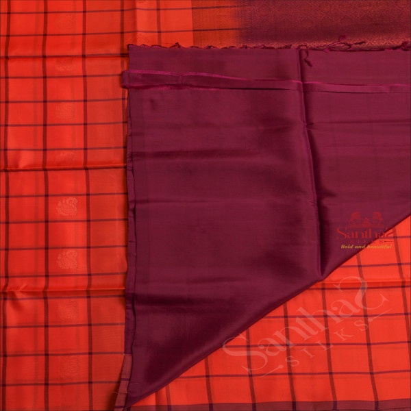 ORANGE COLOUR CHECKED BODY WITH GOLDEN ZARI BUTTA WITH CONTRAST BLOUSE & BORDER