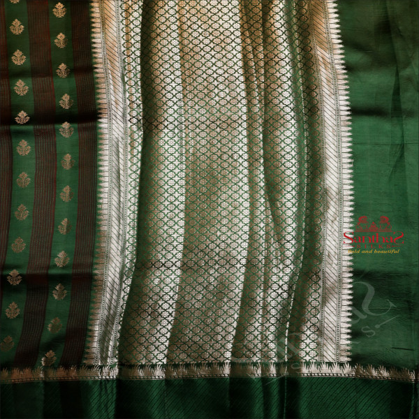 CHINIYA SAREE IN FOREST GREEN COLOUR WITH SILVER ZARI MOTIFS AND CONTRAST COLOUR PALLU & BLOUSE