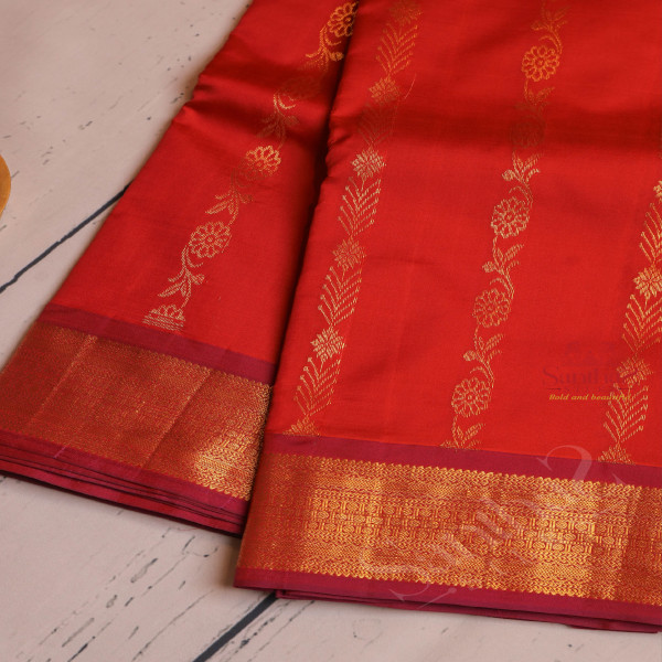 RUSTIC ORANGE COLOUR BODY WITH GOLDEN ZARI FLORAL BUTTA WITH CONTRAST BLOUSE & BORDER