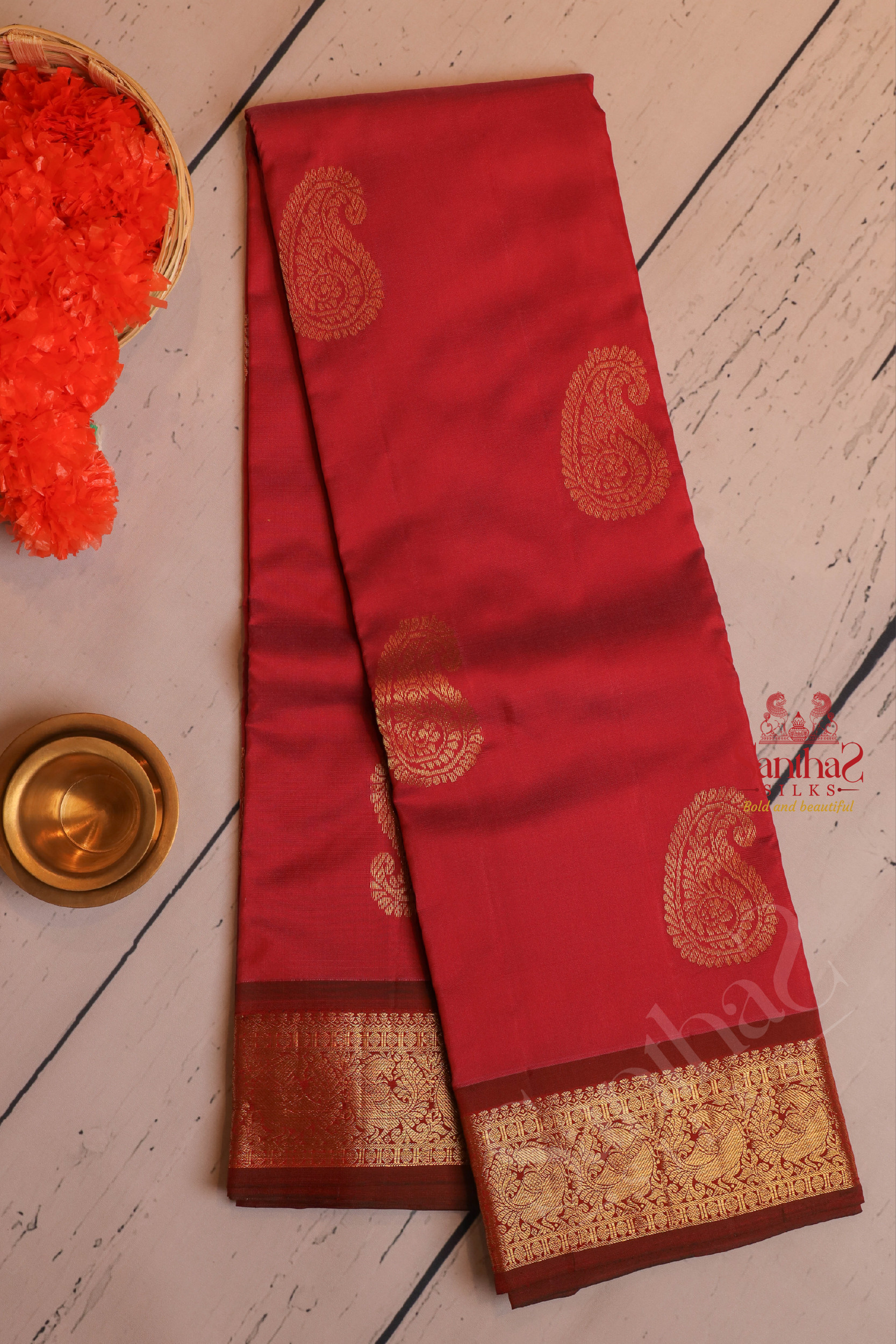 DUSTY PINK COLOUR BODY WITH GOLDEN ZARI MANGO BUTTA WITH CONTRAST BLOUSE & BORDER
