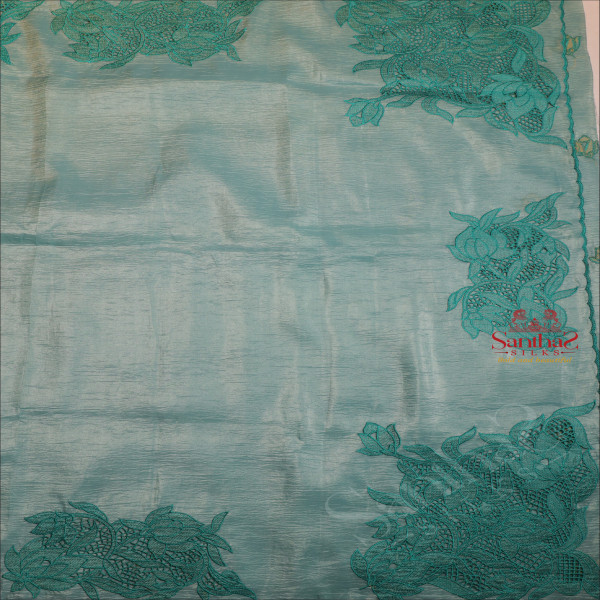 CRUSH MATERIAL SAREE WITH CUT WORK EMBORIDERY IN ULTRA MARINE COLOUR