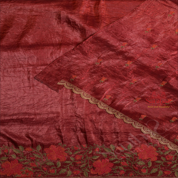 CRUSH MATERIAL SAREE WITH EMBORIDERY IN MAGENTA COLOUR