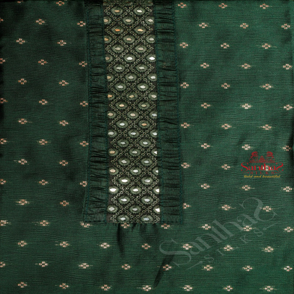 DARK GREEN SEMI TUSSAR UNSTITCHED SALWAR SUIT
