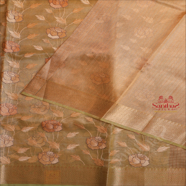 KOTA TISSUE SAREE IN LIME GREEN COLOUR WITH FLORAL EMBORIDERY WORK