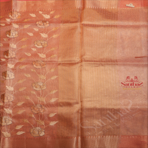 KOTA TISSUE SAREE IN PINK COLOUR WITH FLORAL EMBORIDERY WORK