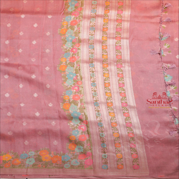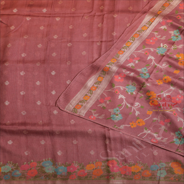 SEMI BANARAS SAREE IN LIGHT PURPLE WITH FLORAL WEAVING DESIGN