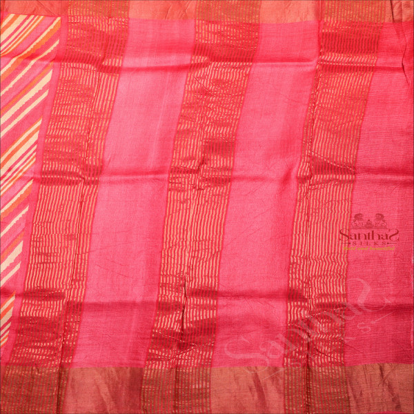 TUSSAR SAREE IN PINK WITH CREAM COLOUR LINES