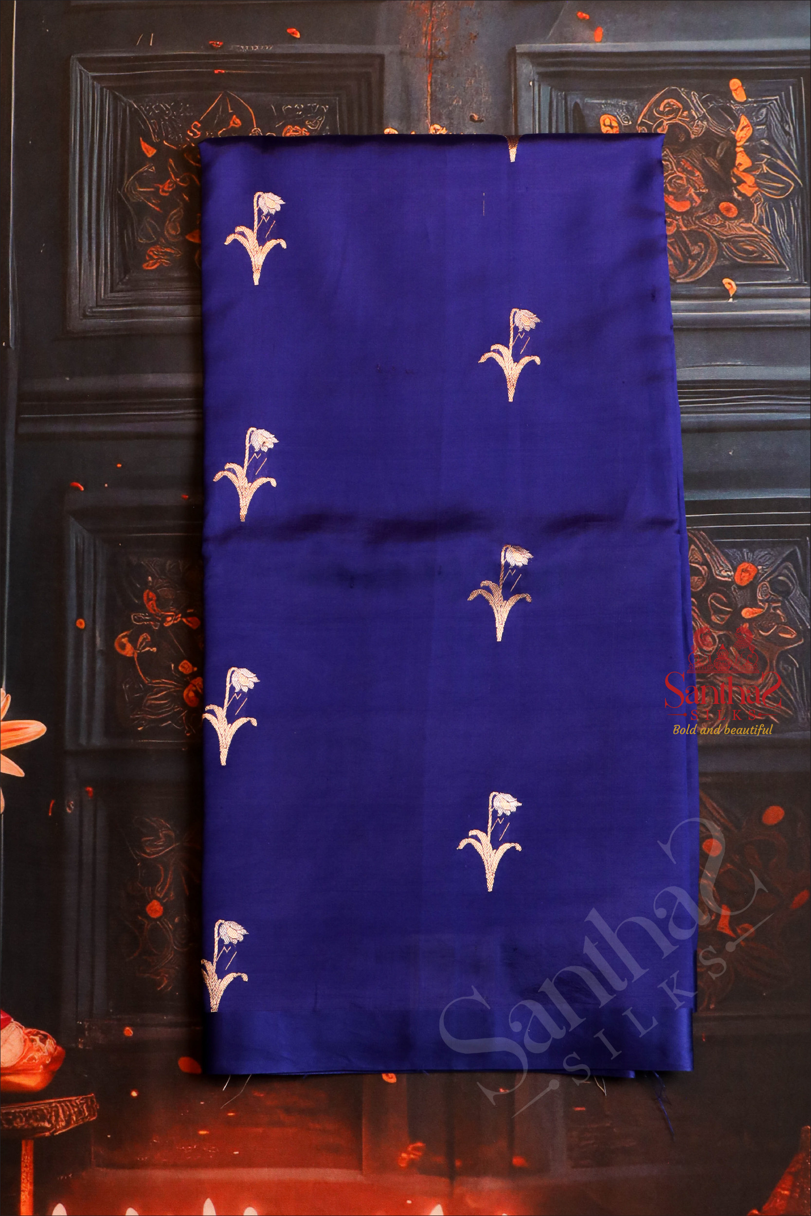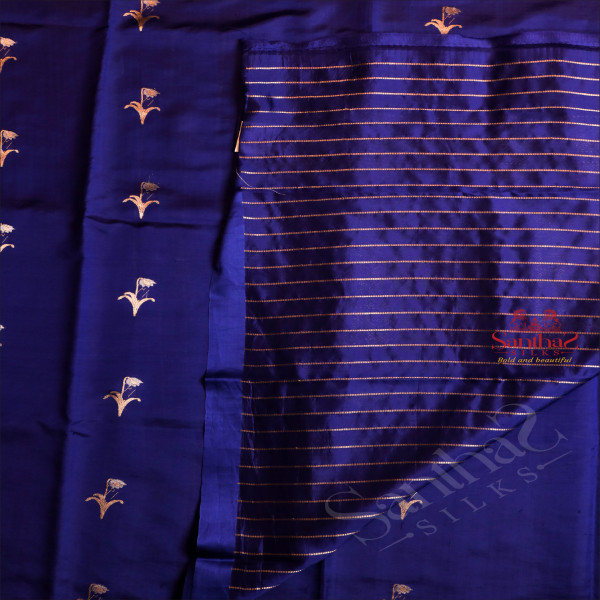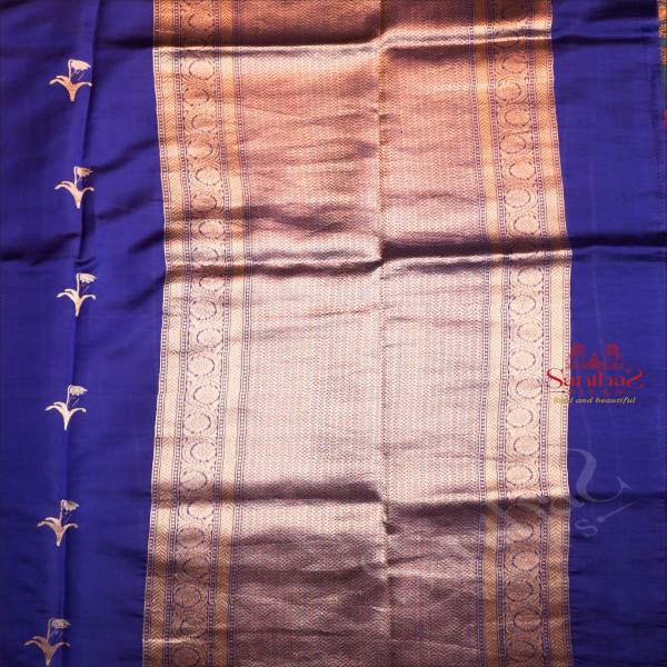 RAW MANGO PEPSI BLUE COLOUR BODY WITH ROSEGOLD ZARI FANCY MOTIFS AND SELF COLOUR BLOUSE & PALLU