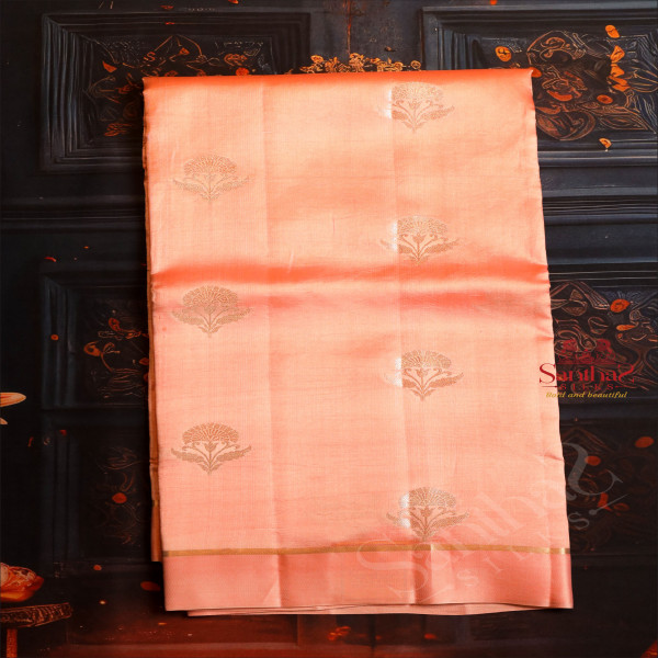CHINIYA SAREE IN PEACH COLOUR WITH GOLDEN ZARI BUTTA WITH SELF BLOUSE