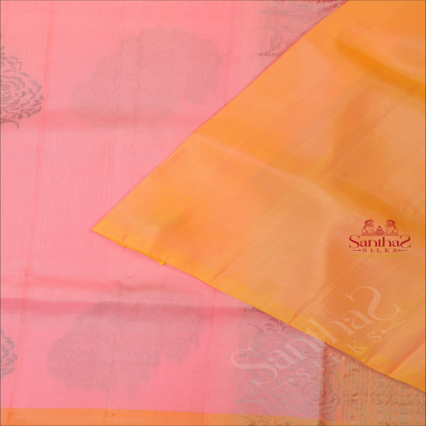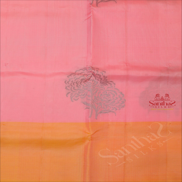 BABY PINK COLOUR BODY WITH FLORAL PATTERN WITH CONTRAST BLOUSE & BORDER