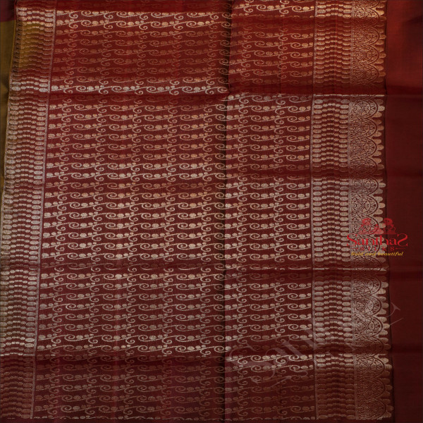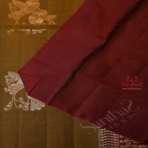 MEHENDHI GREEN COLOUR BODY WITH SILVER ZARI BIRD BUTTA WITH CONTRAST BLOUSE & BORDER