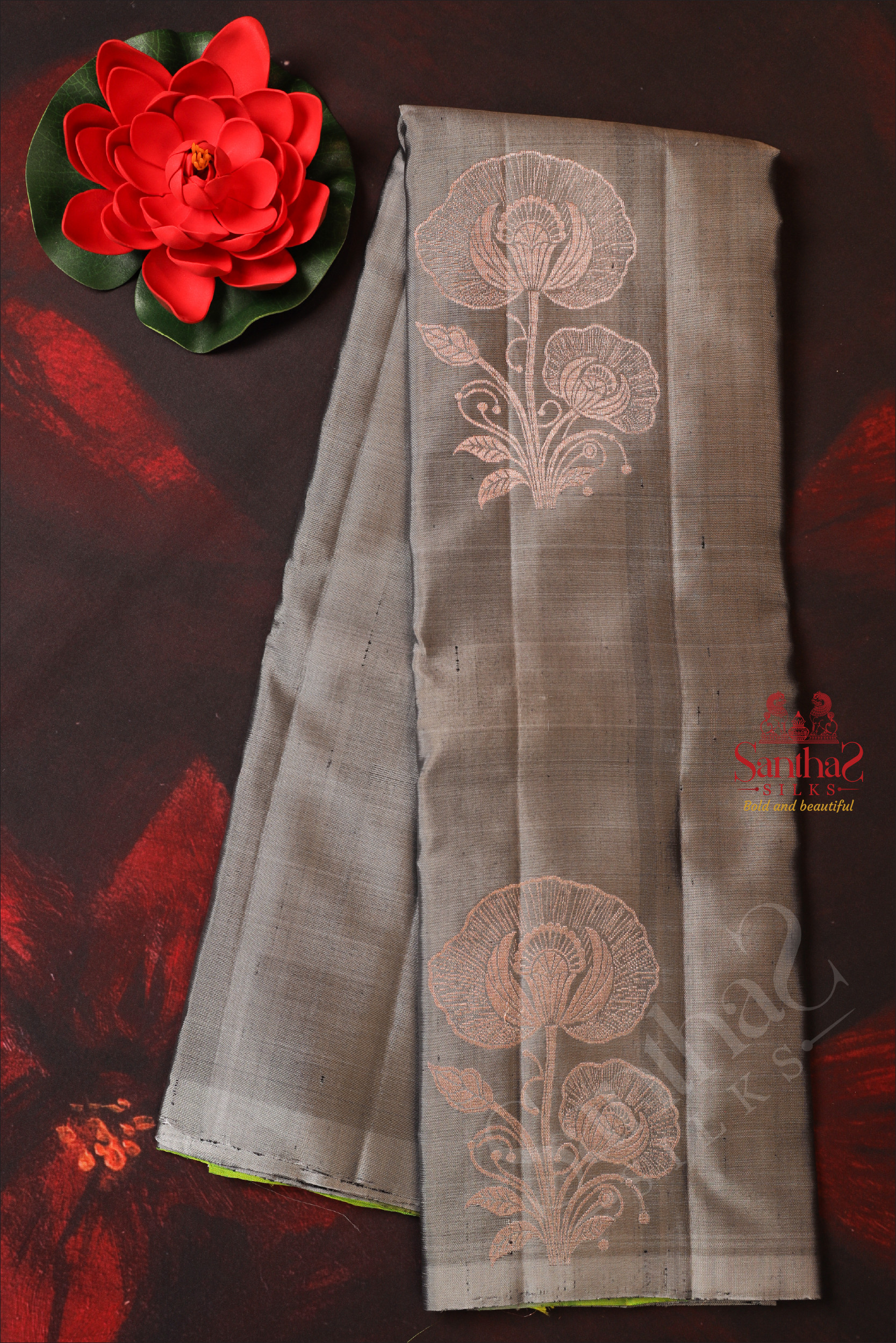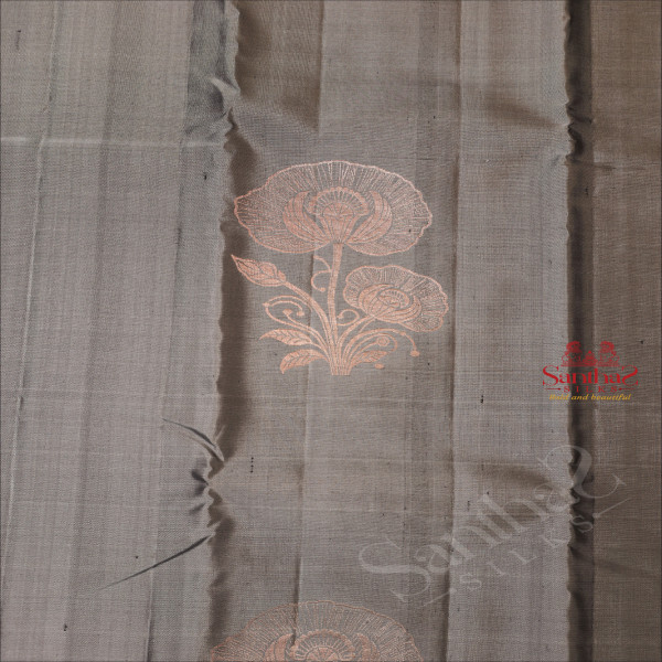 BORDERLESS GRAY COLOUR BODY WITH COPPER ZARI FLORAL BUTTA WITH CONTRAST BLOUSE