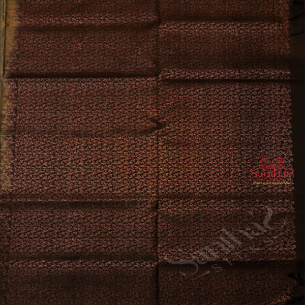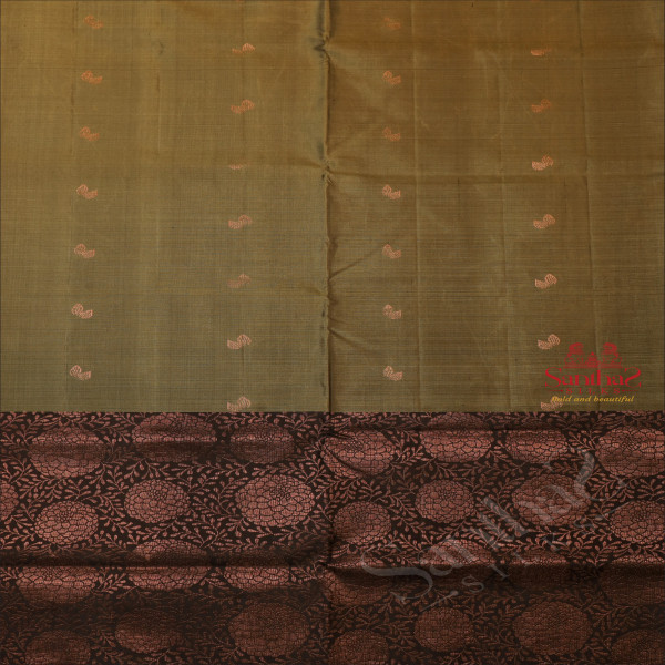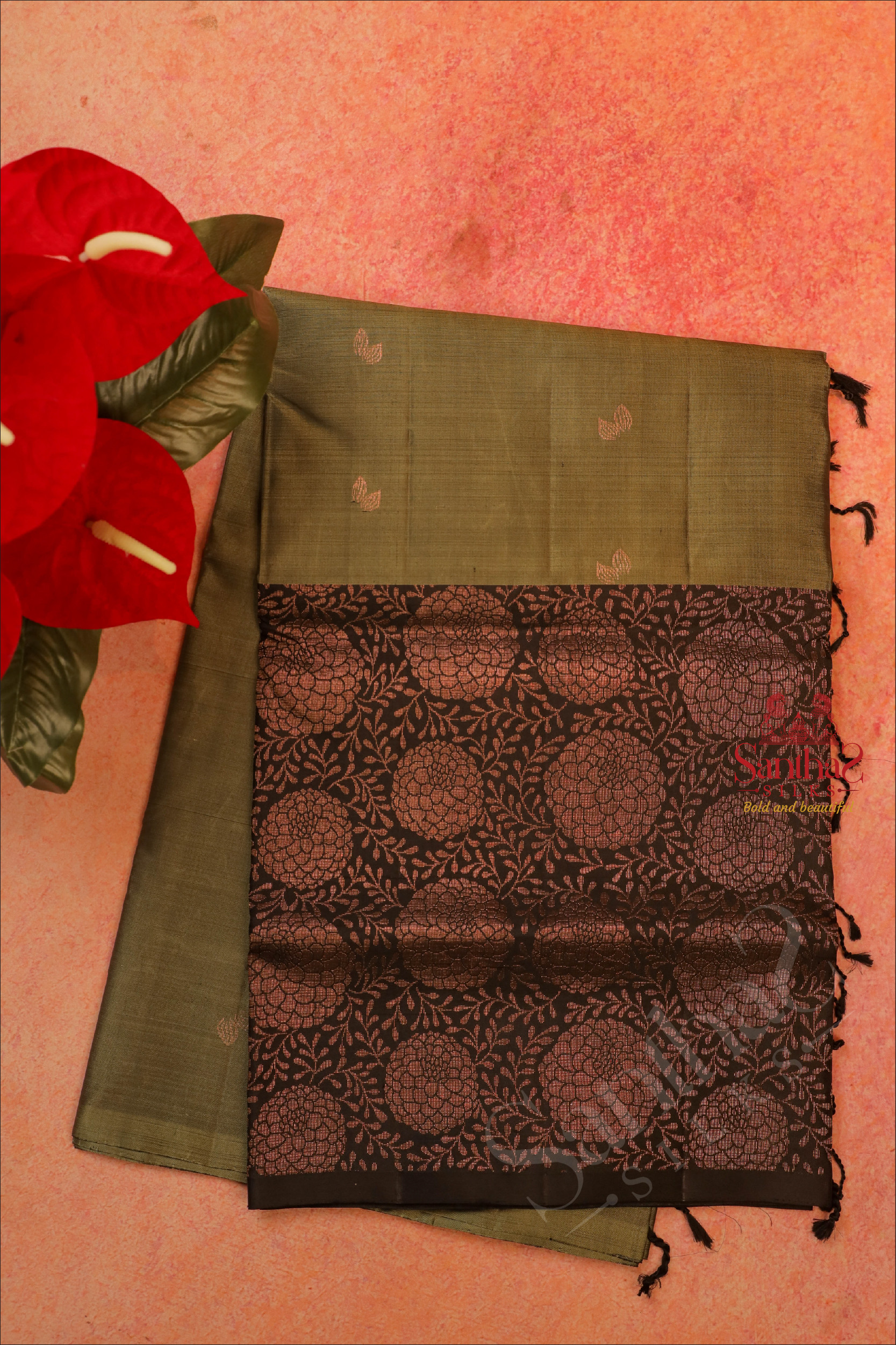 DARK MOSS GREEN COLOUR BODY WITH COPPER ZARI LEAF BUTTA WITH CONTRAST BLOUSE & BORDER