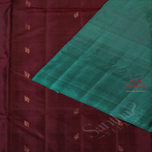 DARK PURPLE COLOUR BODY WITH COPPER ZARI LEAF BUTTA WITH CONTRAST BLOUSE & BORDER