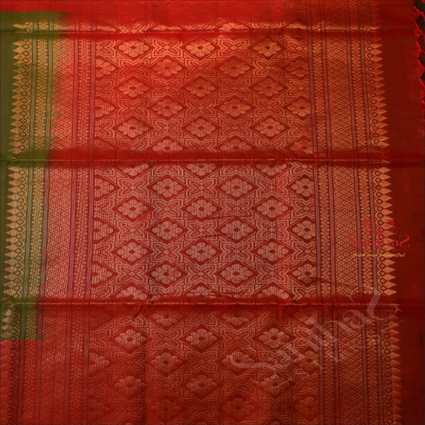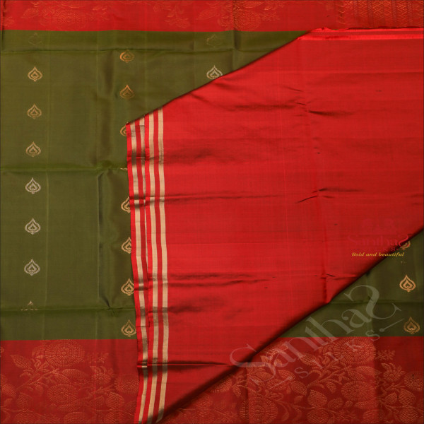 DARK OLIVE GREEN COLOUR BODY WITH GOLDEN ZARI BUTTA WITH CONTRAST BLOUSE & BORDER
