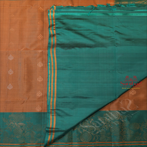 PEANUT BROWN COLOUR BODY WITH GOLDEN ZARI BUTTA WITH CONTRAST BLOUSE & BORDER
