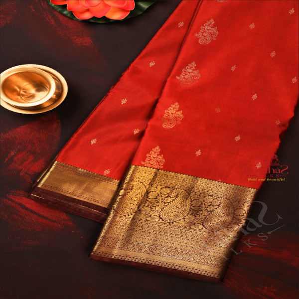 HONEY COLOUR BODY WITH GOLDEN ZARI BUTTAS WITH CONTRAST BLOUSE & BORDER