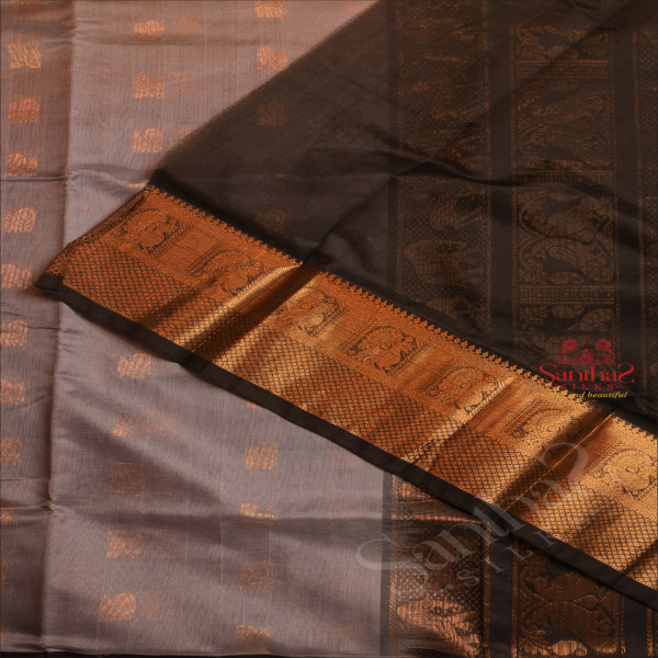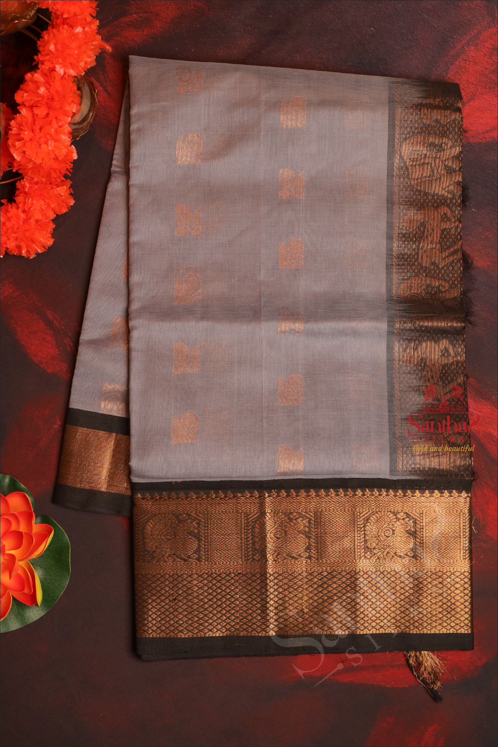 GREY COLOUR BODY WITH GOLDEN ZARI ANNAM BUTTA WITH CONTRAST BLOUSE & BORDER