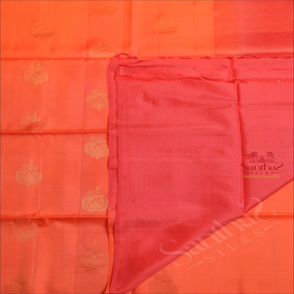 ORANGE COLOUR BODY WITH GOLDEN ZARI BUTTA WITH CONTRAST BLOUSE & BORDER