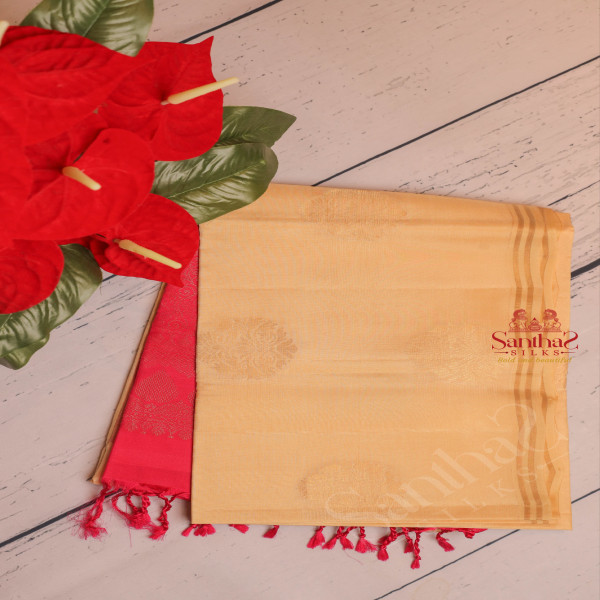SANDAL COLOUR BODY WITH GOLDEN ZARI BUTTA WITH CONTRAST BLOUSE & BORDER