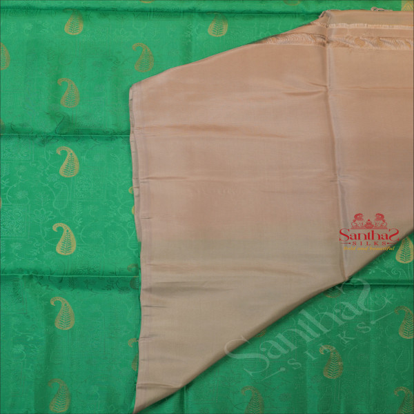 EMERALD GREEN COLOUR BODY WITH GOLDEN ZARI MANGO MOTIFS AND CONTRAST COLOUR PALLU & BLOUSE