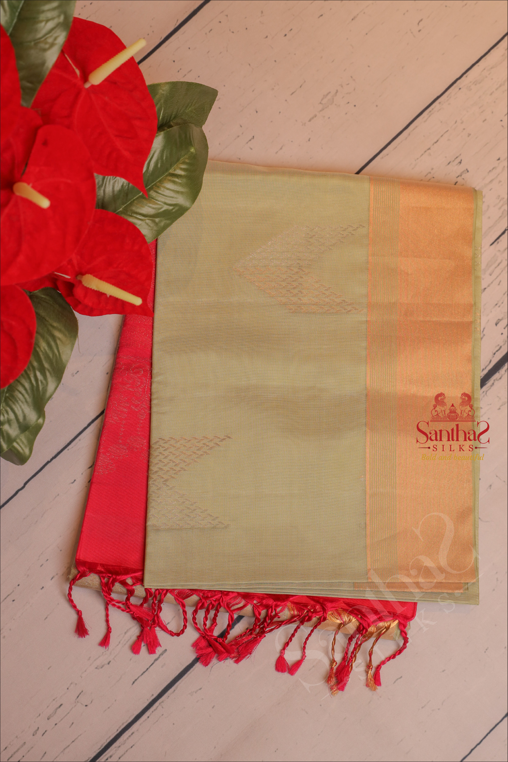 PISTHA GREEN COLOUR BODY WITH COPPER ZARI BUTTA WITH CONTRAST BLOUSE & BORDER