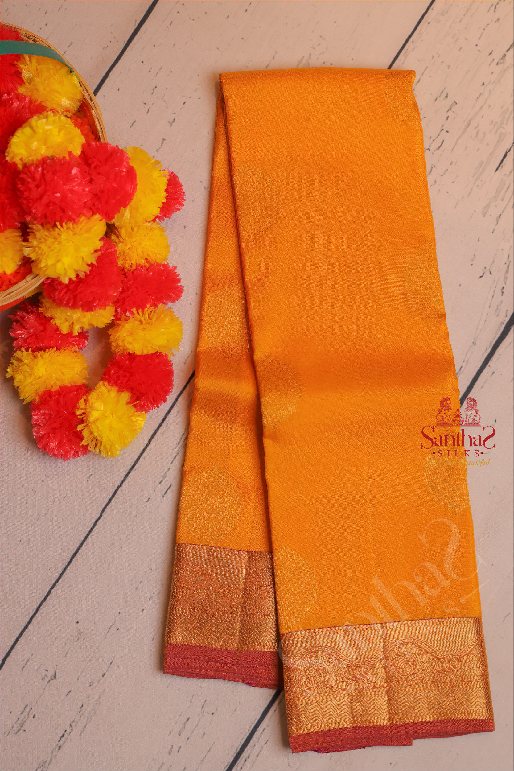 MANGO YELLOW COLOUR BODY WITH GOLDEN ZARI BUTTA WITH CONTRAST BLOUSE