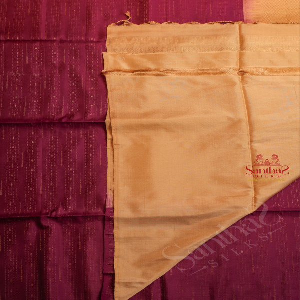 PURPLE COLOUR BODY WITH GOLDEN ZARI STRIPS WITH CONTRAST BLOUSE & BORDER