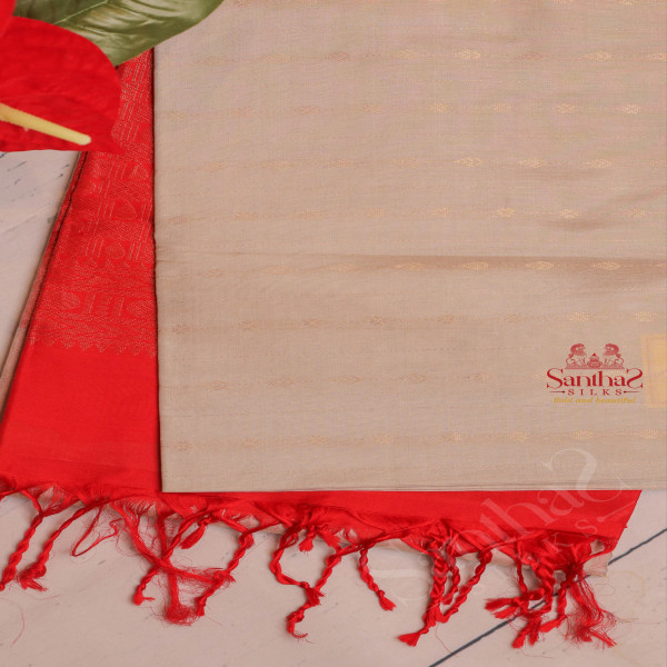 DIRT BROWN COLOUR BODY WITH GOLDEN ZARI STRIPS WITH CONTRAST BLOUSE & BORDER