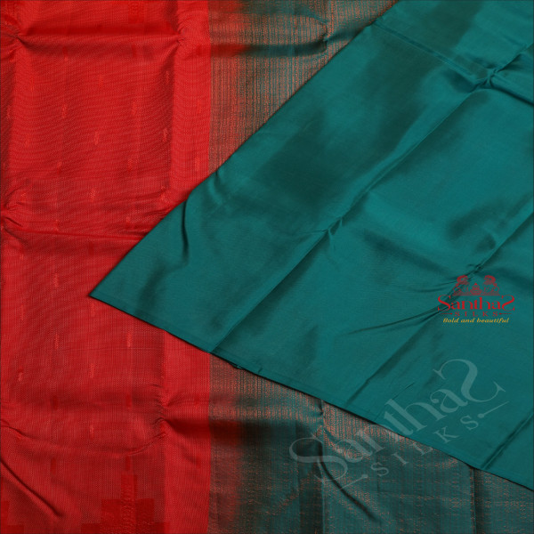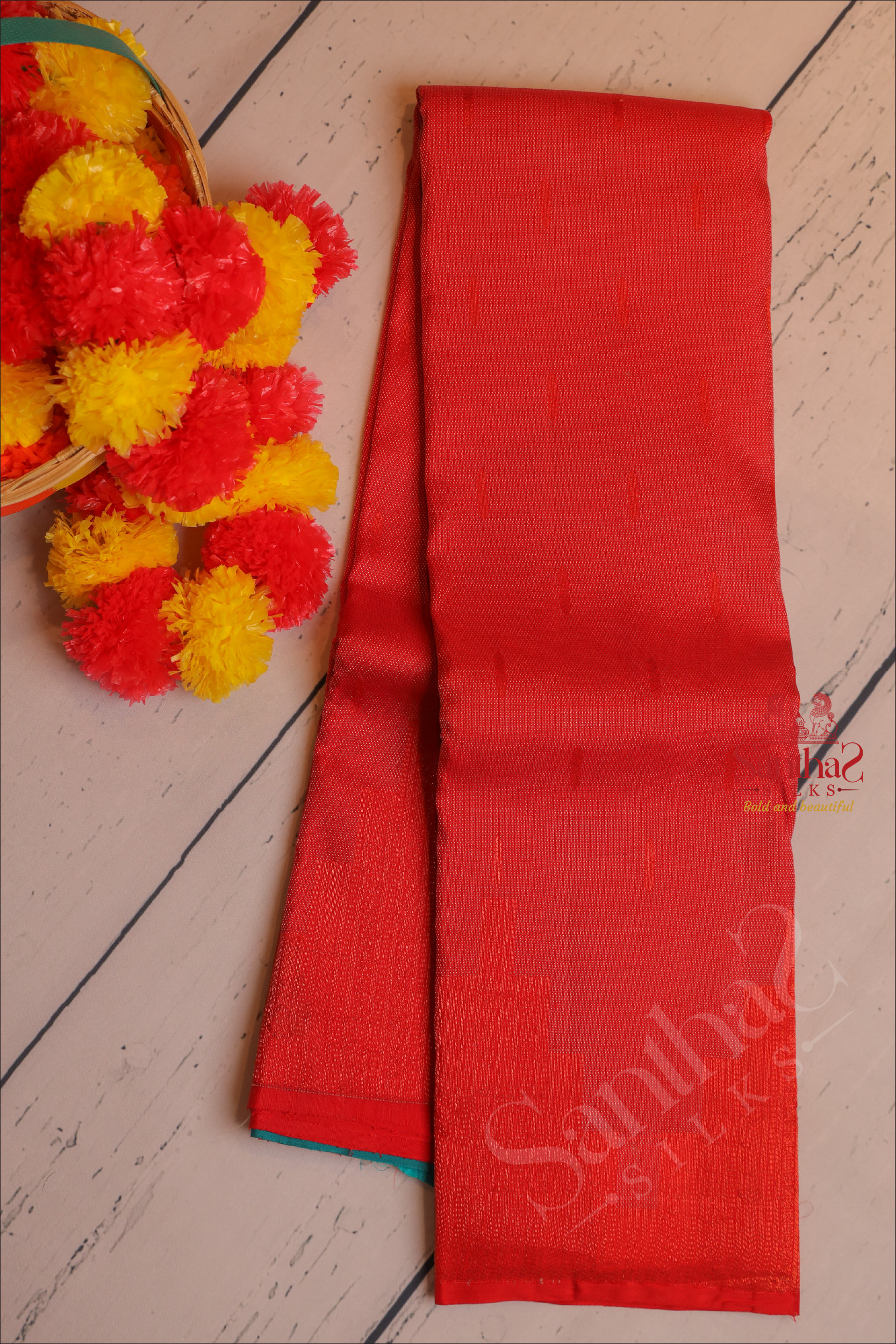 BORDERLESS ORANGE COLOUR BODY WITH GOLDEN ZARI BUTTA WITH CONTRAST BLOUSE