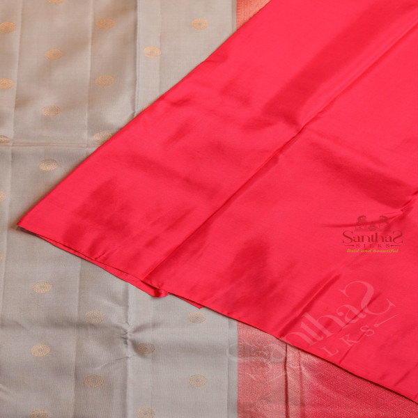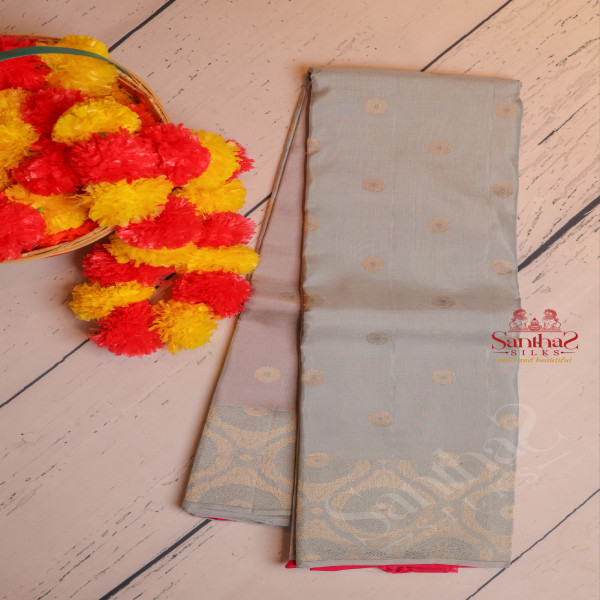 BORDERLESS BLUE GREY COLOUR BODY WITH GOLDEN ZARI COIN BUTTA WITH CONTRAST BLOUSE