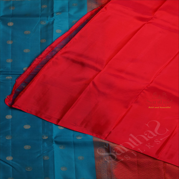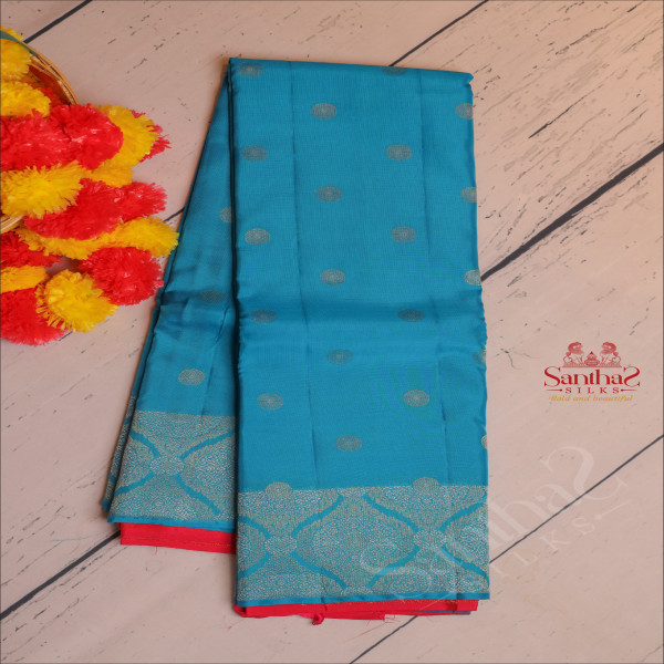 BORDERLESS BLUE COLOUR BODY WITH GOLDEN ZARI COIN BUTTA WITH CONTRAST BLOUSE