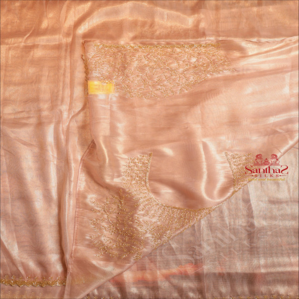 PEACH COLOUR ORGANZA TISSUE SAREE WITH FANCY SCALLOP BORDER WITH SELF BLOUSE