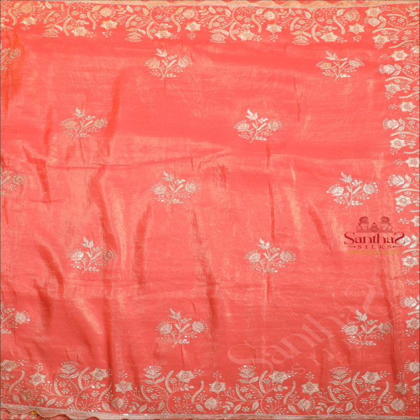 CRUSH MATERIAL SAREE WITH EMBORIDERY WORK IN PEACH PINK COLOUR
