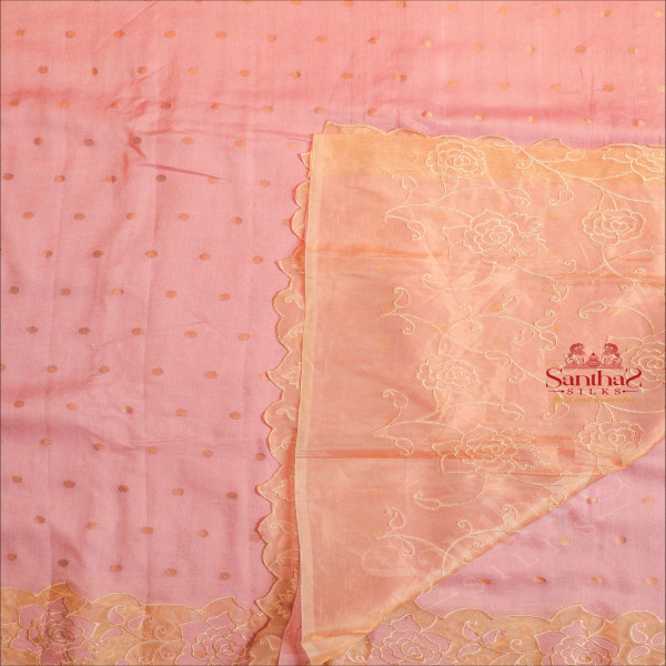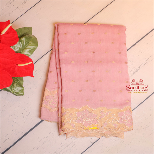 BABY PINK COLOUR MUNGA SILK WITH GOLDEN BUTTA CUT WORK BORDER WITH APPLICK WORK BLOUSE