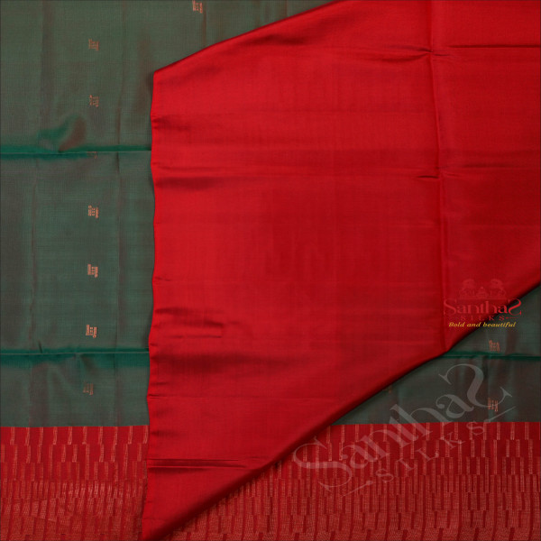 PINE GREEN COLOUR BODY WITH COPPER ZARI BUTTA WITH CONTRAST BLOUSE & BORDER